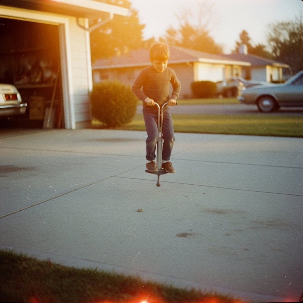 The footrests were thin metal. They’d slip. Mid-bounce. You’d crash down straddling the metal pole. Every kid learned that lesson once. Some learned it twice.