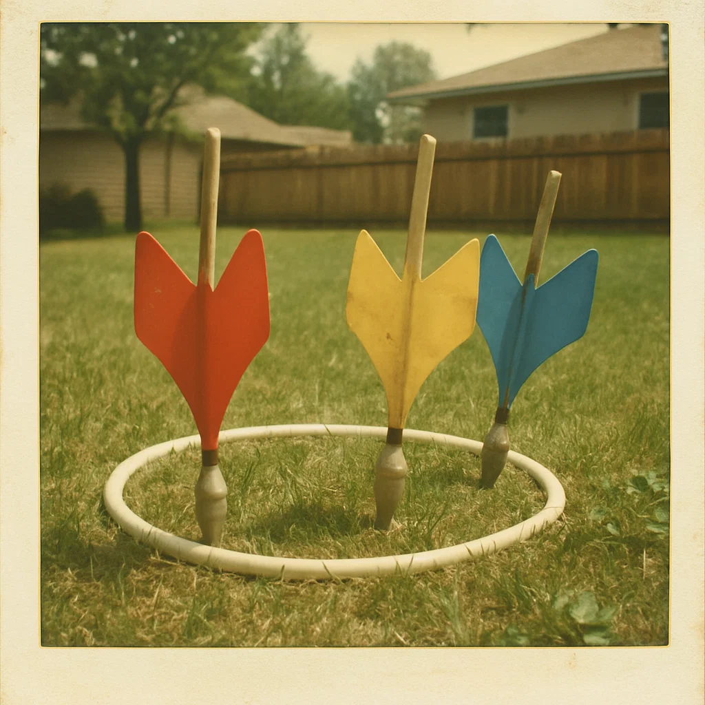 Lawn darts were exactly what they sound like—giant darts with weighted metal tips that you threw at plastic rings. The official rules said to stand 35 feet apart. Nobody followed the official rules.