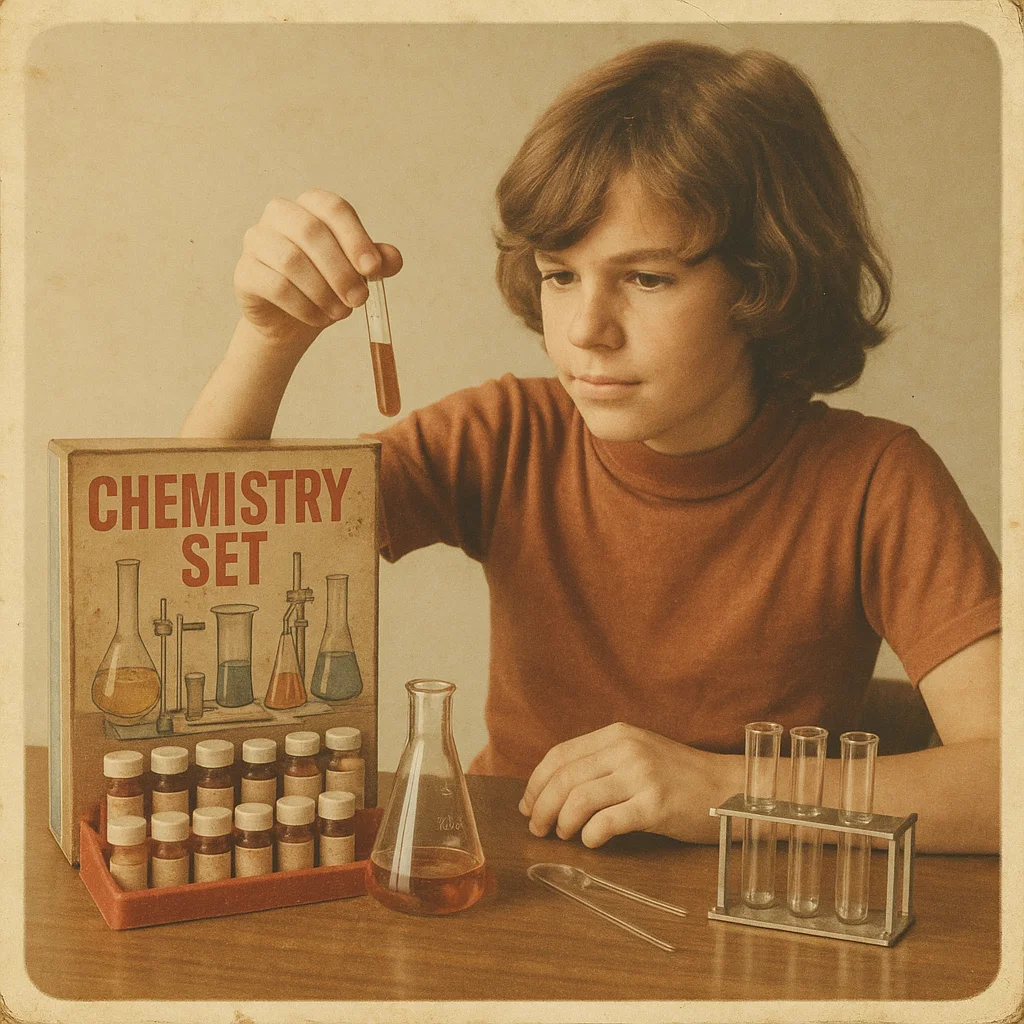 No safety goggles. No adult supervision required. Just a box of chemicals and a book of experiments that started tame and escalated quickly.