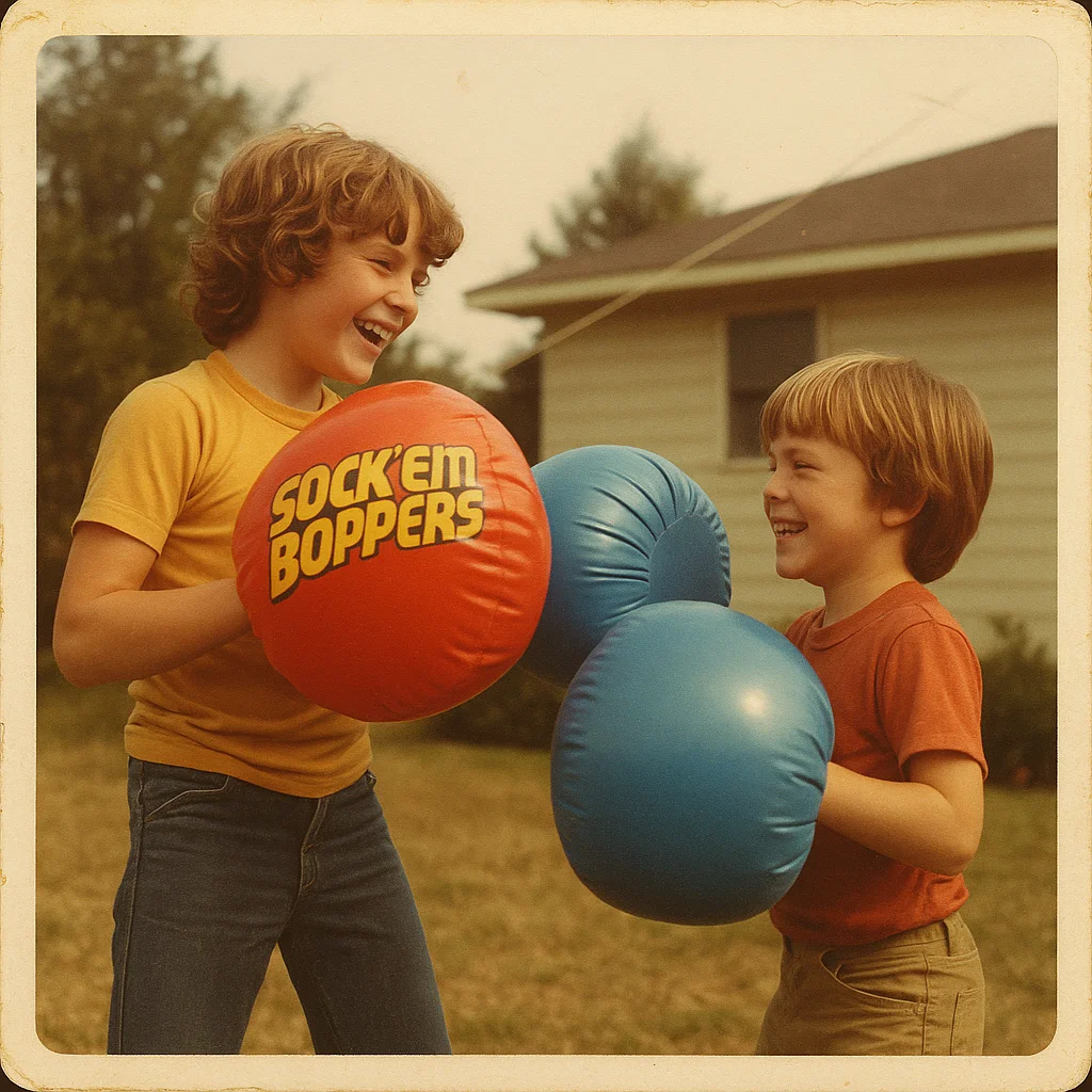 Sock’em Boppers were inflatable boxing gloves that turned every playroom into Fight Club. The commercial said they were safe. The commercial lied.
