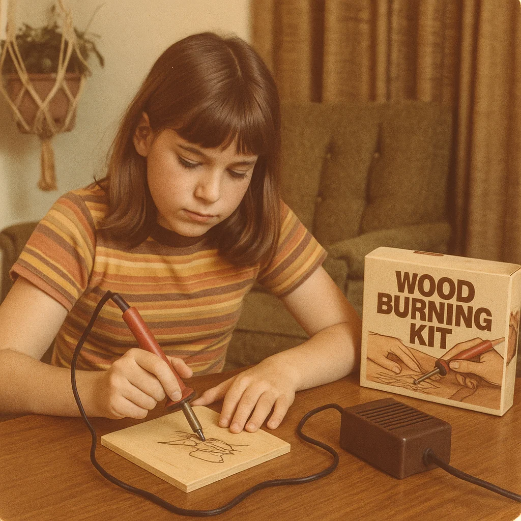 Wood burning kits came with a pen that heated to 750 degrees. The safety instructions? “Don’t touch the metal part.” That was it.