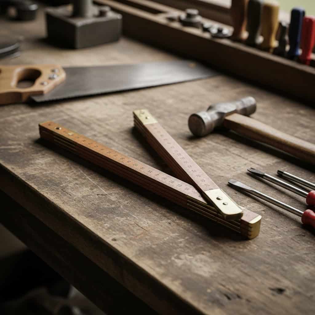 Grandpa’s folding rule clicked open with authority. Each brass joint snapped into place like a soldier reporting for duty.