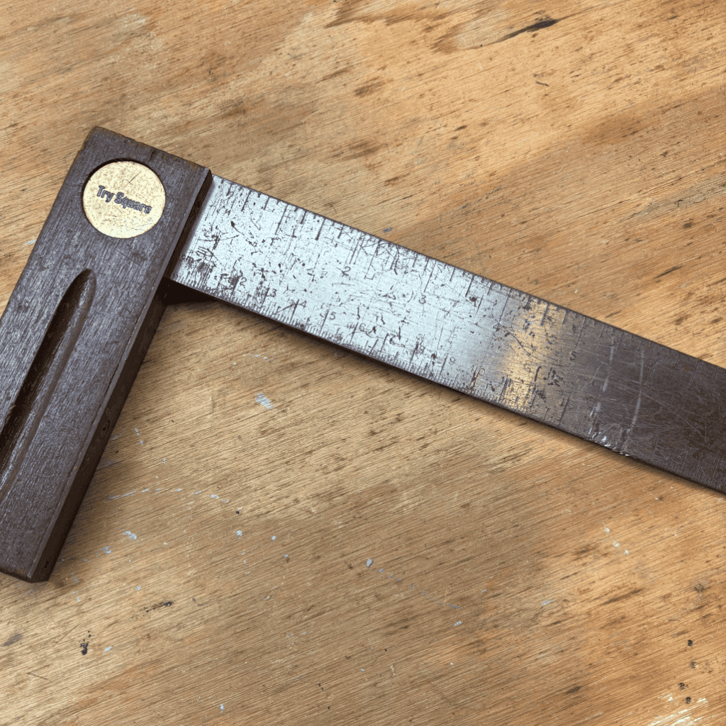 His try square was deceptively simple. Steel blade, rosewood handle, maybe a brass wear plate. Nothing fancy. But set it on a machinist’s granite plate today and it’s still dead true.