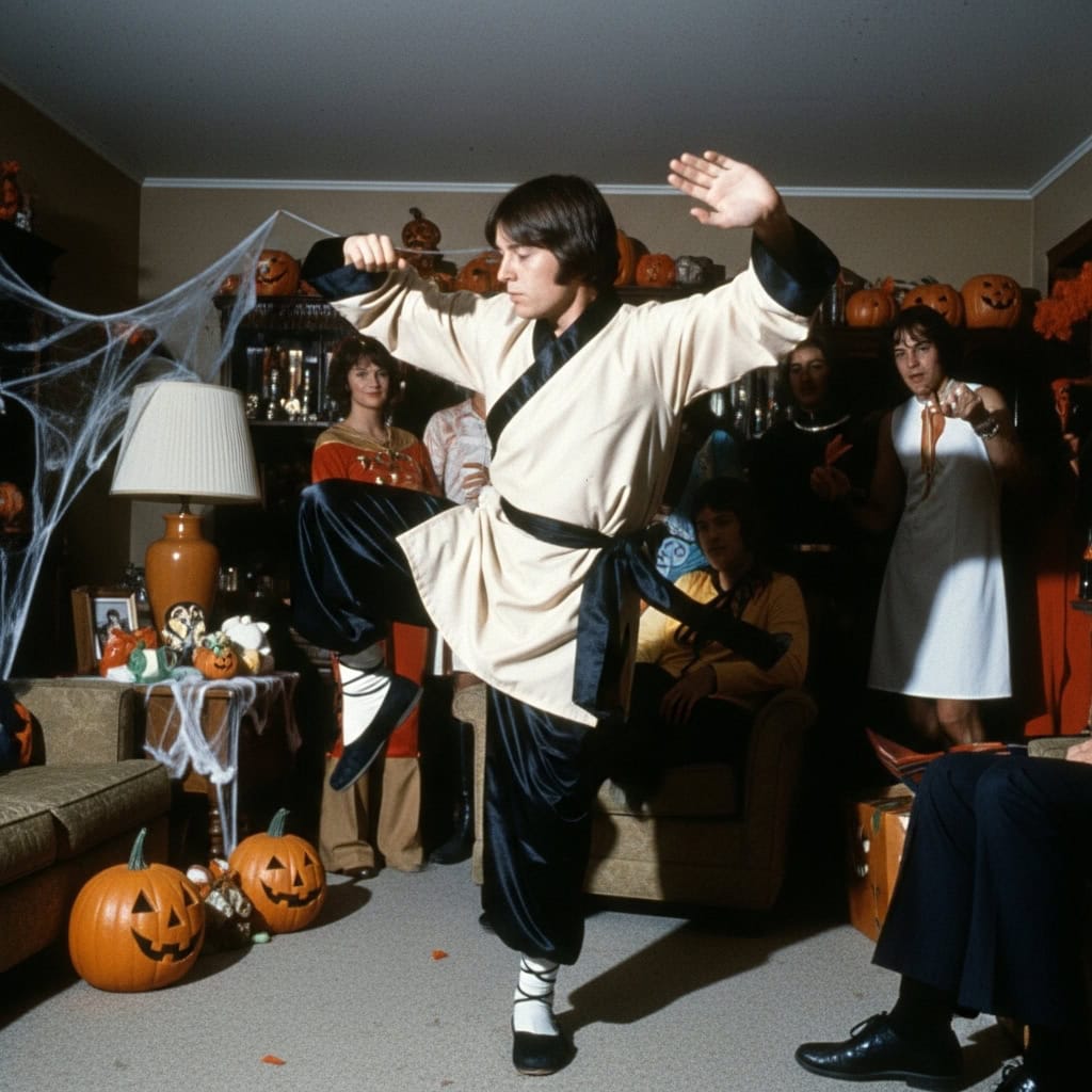 Cheap satin pajamas from Kmart. A headband. Maybe a plastic sword if you were lucky. Lots of “hi-ya!” sounds and questionable karate chops.
