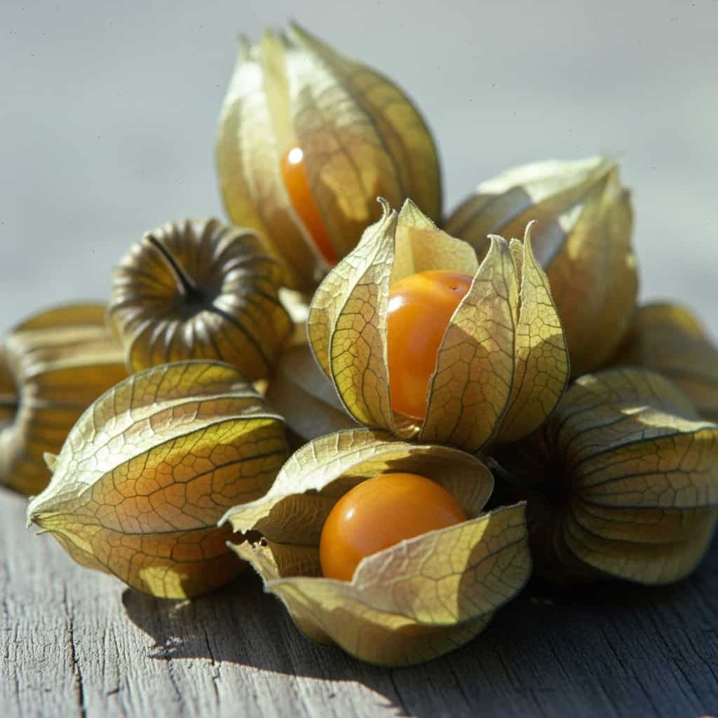 Ground cherries delivered. Small golden fruits wrapped in papery husks that looked like Chinese lanterns. The husks protected them naturally—stored for months without any work.