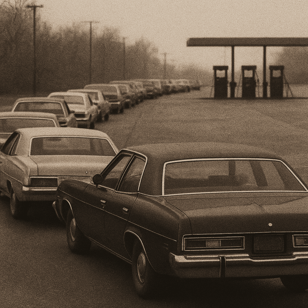 Stations rationed fuel. Lines stretched down the street. Green flags meant gas available. Red flags meant you were out of luck. Some places limited how much you could pump. It was miserable.