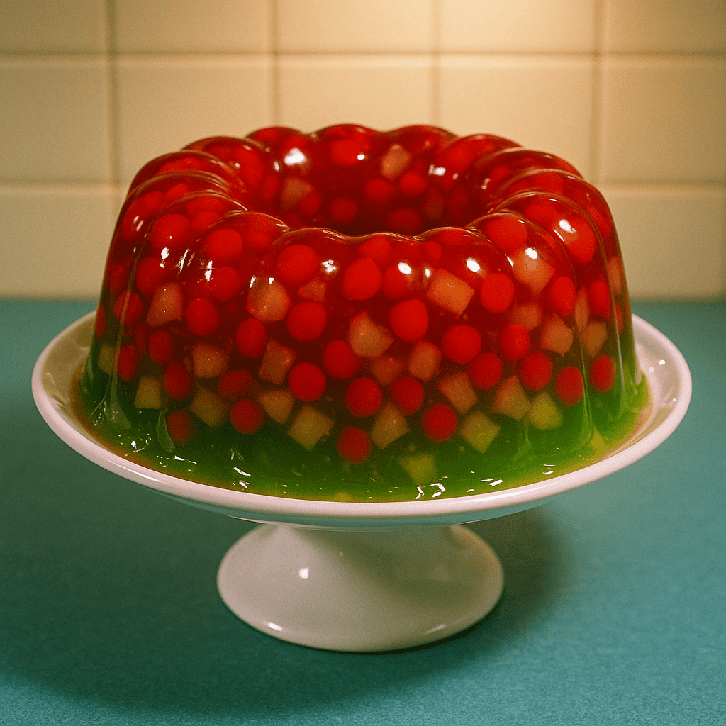 That tower of shimmering green gelatin—with carrots suspended inside and cottage cheese mixed throughout—was the centerpiece of every potluck and holiday gathering.