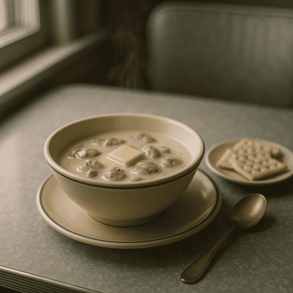 No meat on Christmas Eve meant oyster stew became tradition. A simple dish—milk, butter, and oysters from a can if you lived far from the coast.