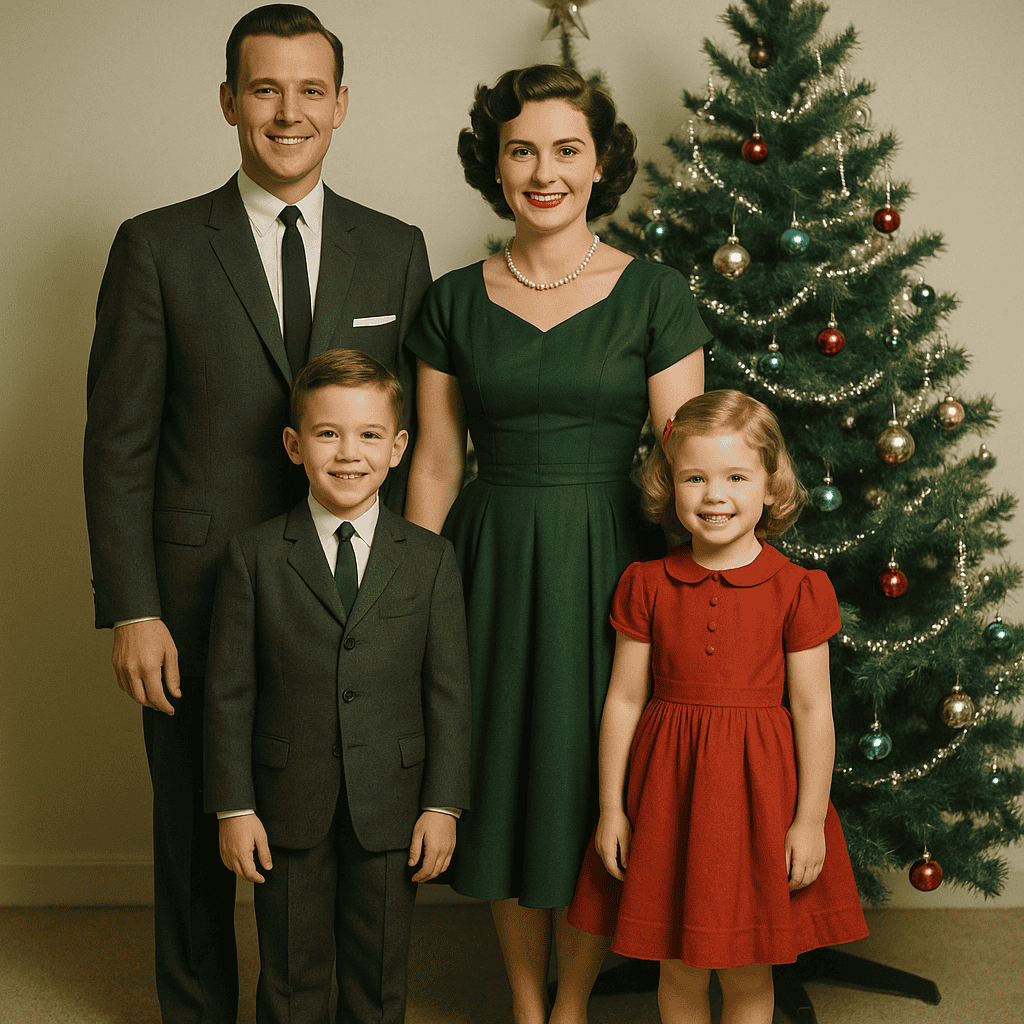 Matching family pajamas for Christmas morning created picture-perfect moments before cameras were everywhere.