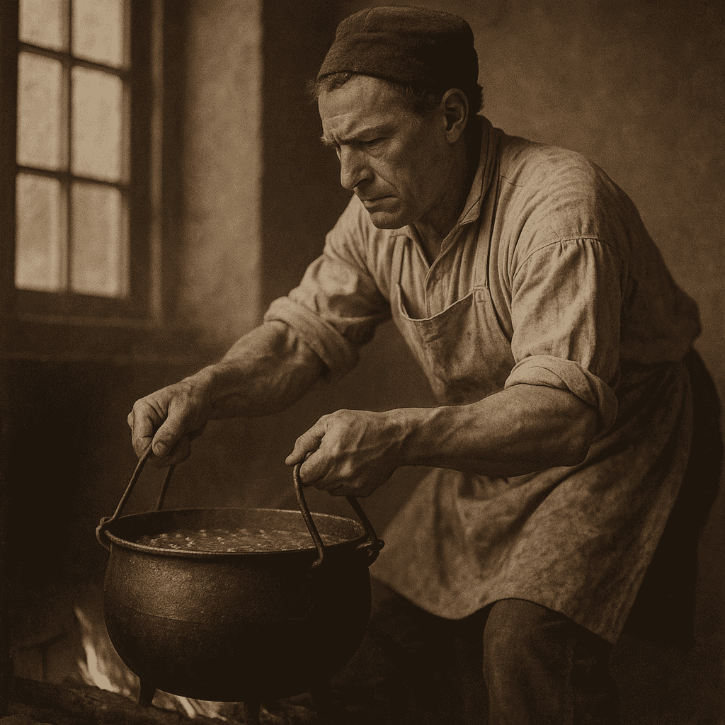 The big iron kettles used for boiling were massive. A full one could weigh forty pounds or more. And there were no handles—just a hook that hung from a swinging crane over the fire.